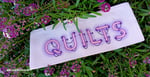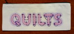 Just like the purple neon sign at Aunt Angie's LQS in "The Crazy Quilter," this natural canvas pencil case features "QUILTS" in purple neon.