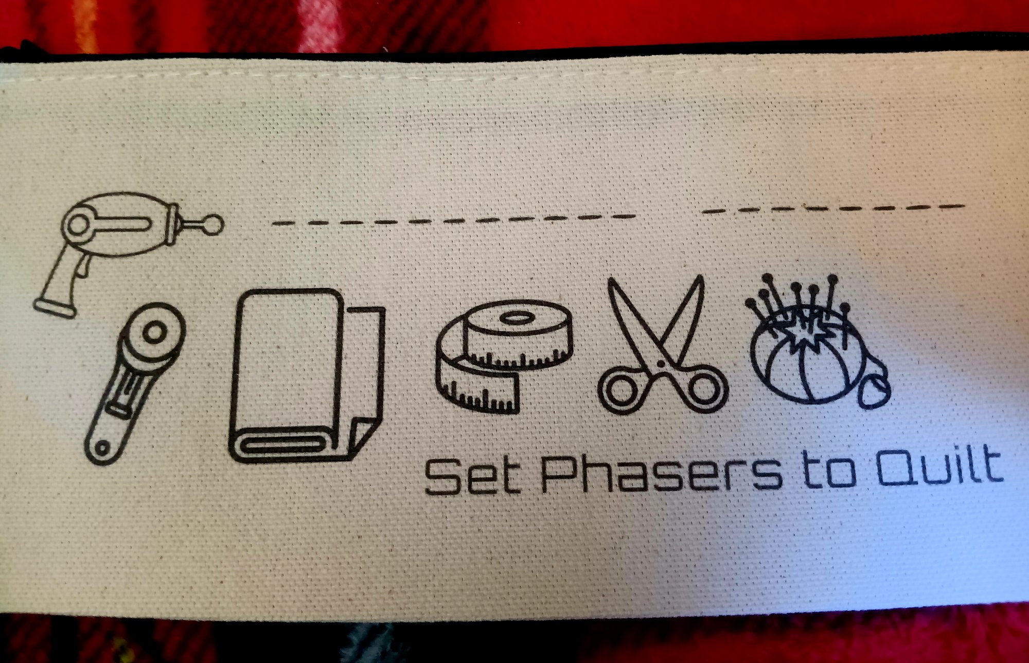 "Set Phasers to Quilt" pictures all the essential sewing tools, including a phaser.